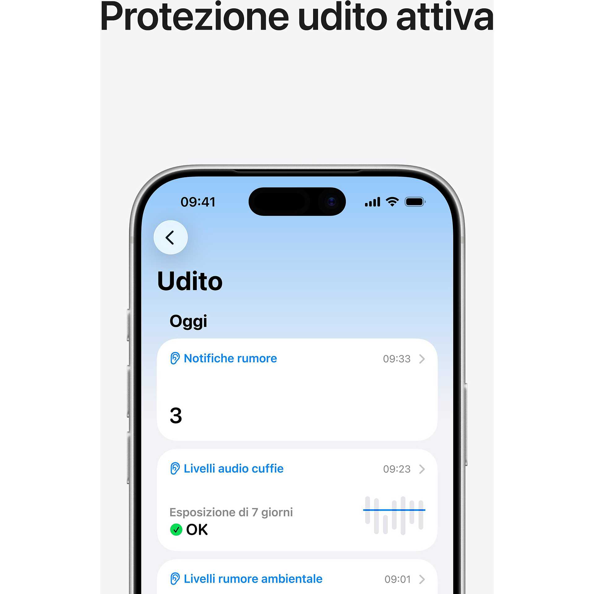 Puoi fare un test dell’udito dal comfort di casa. E la funzione “Protezione udito” attiva ti aiuta a limitare l’esposizione ai rumori ambientali più forti.
