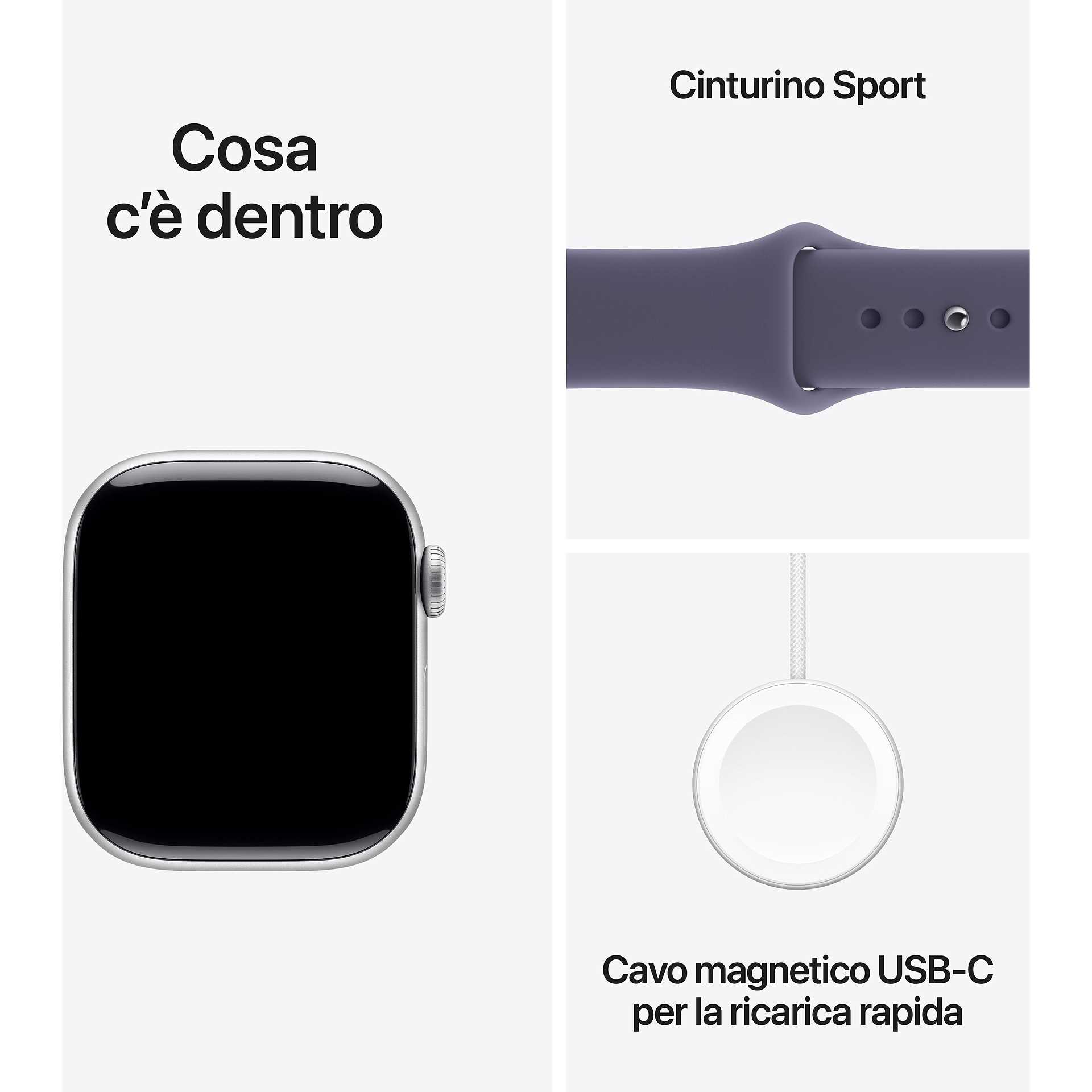 Apple Watch Series 11 GPS 42mm Cassa Alluminio Argento con Sport Band Viola Nebbia - S/M