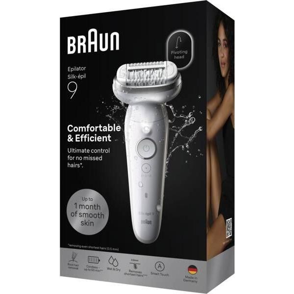 Braun Silk-epil 9 SE9-000 Epilatore Ricaricabile Wet & Dry 40 Pinzette MicroGrip – Argento