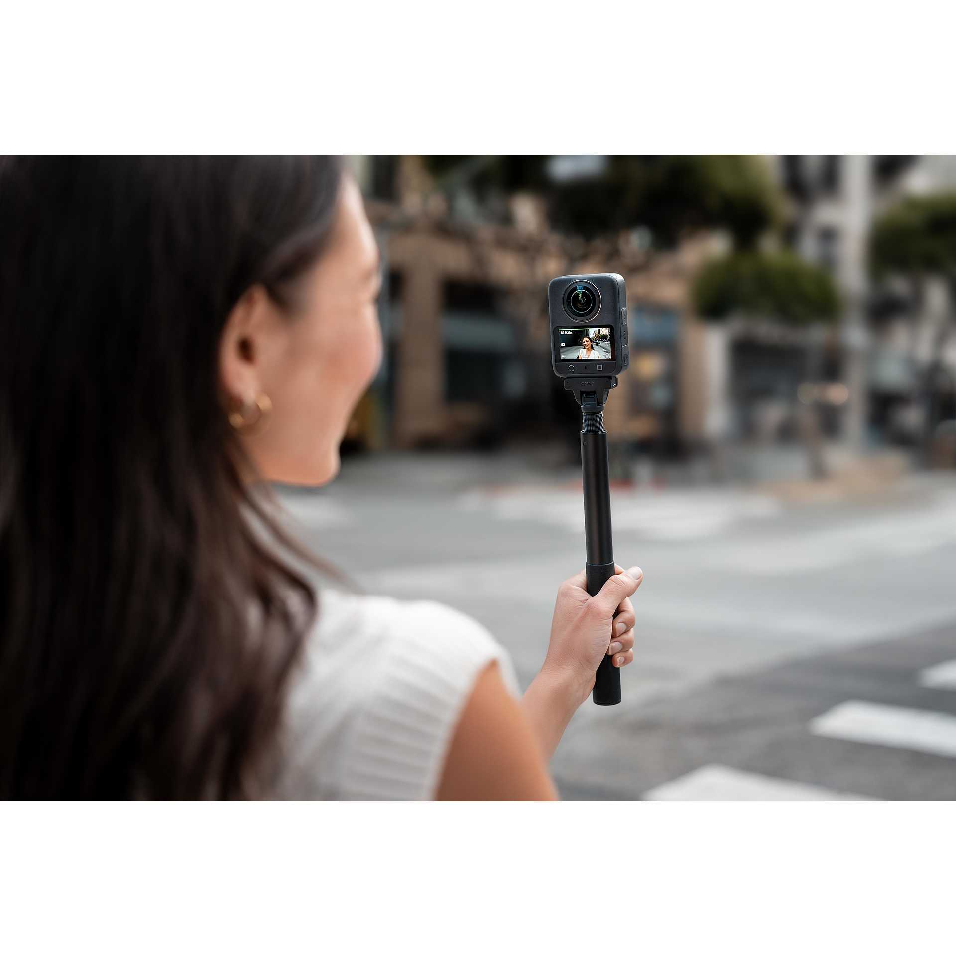 Grazie ai campi immagine a 360° da 1 pollice e un'apertura f/1.9, cattura immagini di qualità superiore anche in condizioni di scarsa illuminazione. Con un chip di imaging ad alte prestazioni e una dissipazione del calore superiore, registra in 8K/30fps fino a 100 minuti. Continua l'avventura per ulteriori 180 minuti con il manico telescopico con batteria.