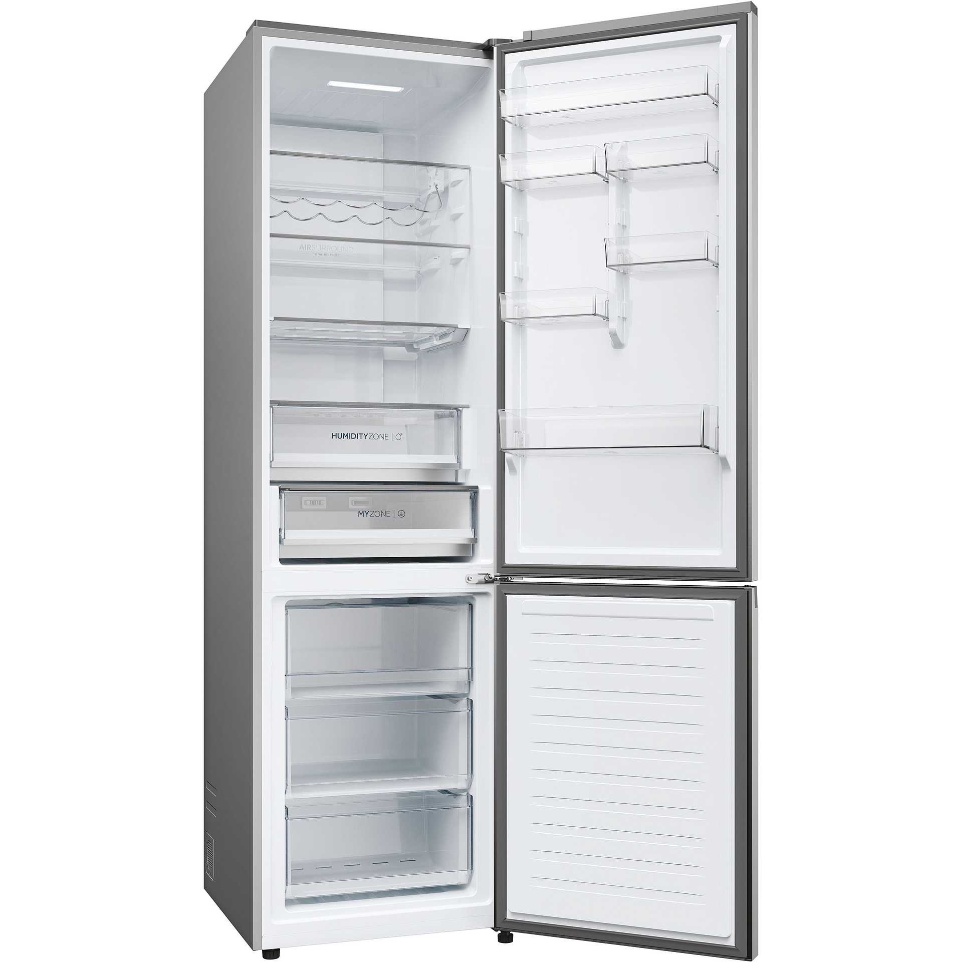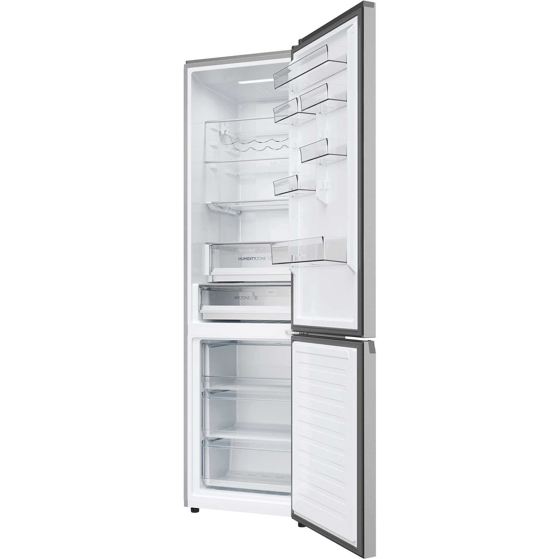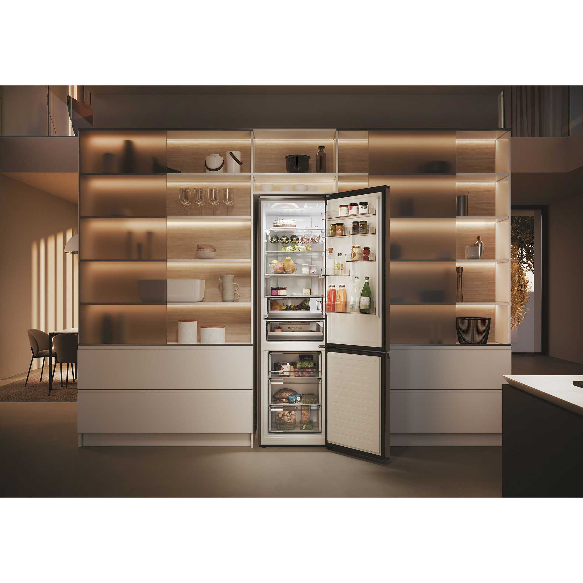 Tecnologie Haier (conservazione degli alimenti) | Air Surround, Anti-mould Gasket, Artificial Intelligence, Fast Freeze, Humidity Zone, Multi Air Flow, MyZone, Super Cool, Super Freeze, Total No Frost, Wine Rack, hOn App |