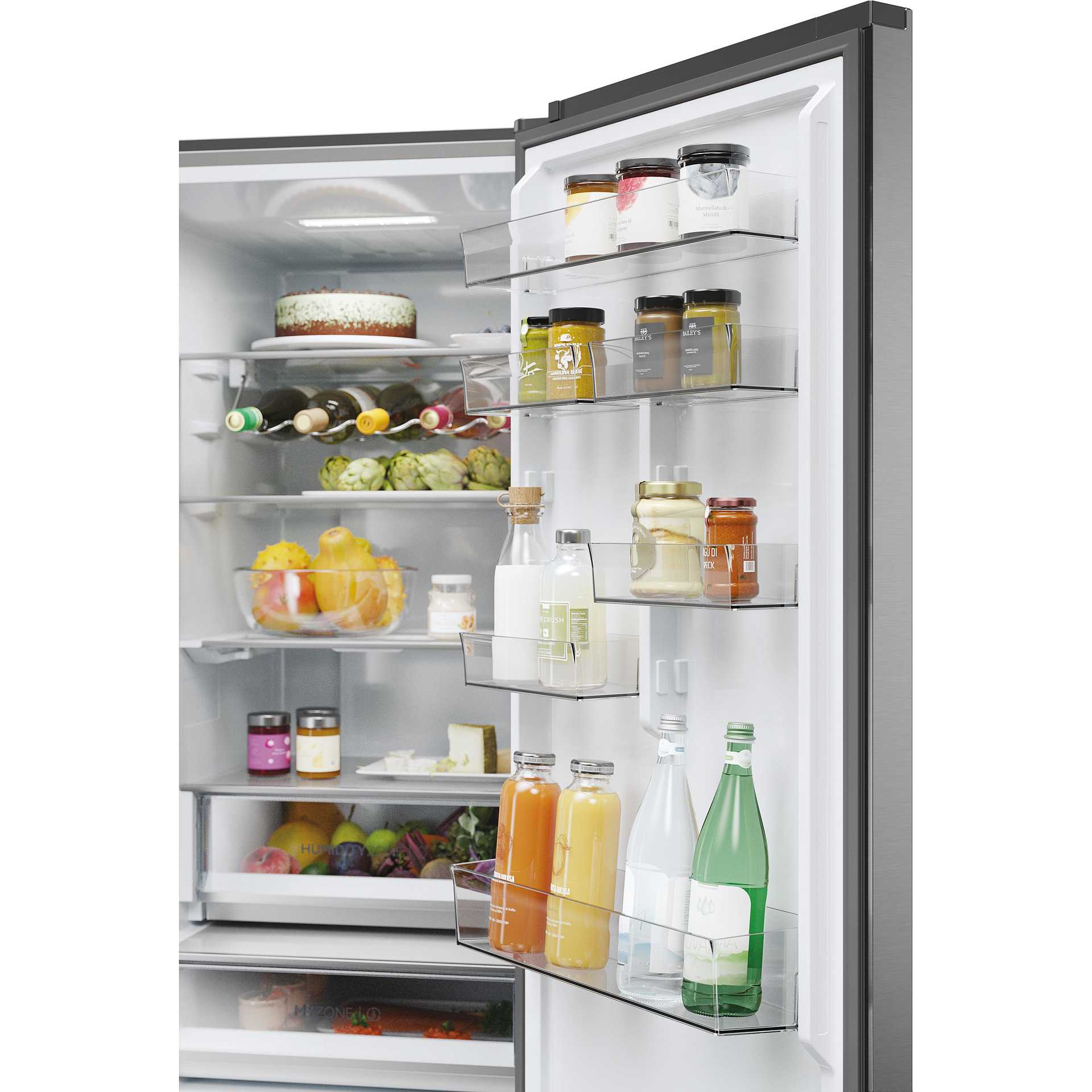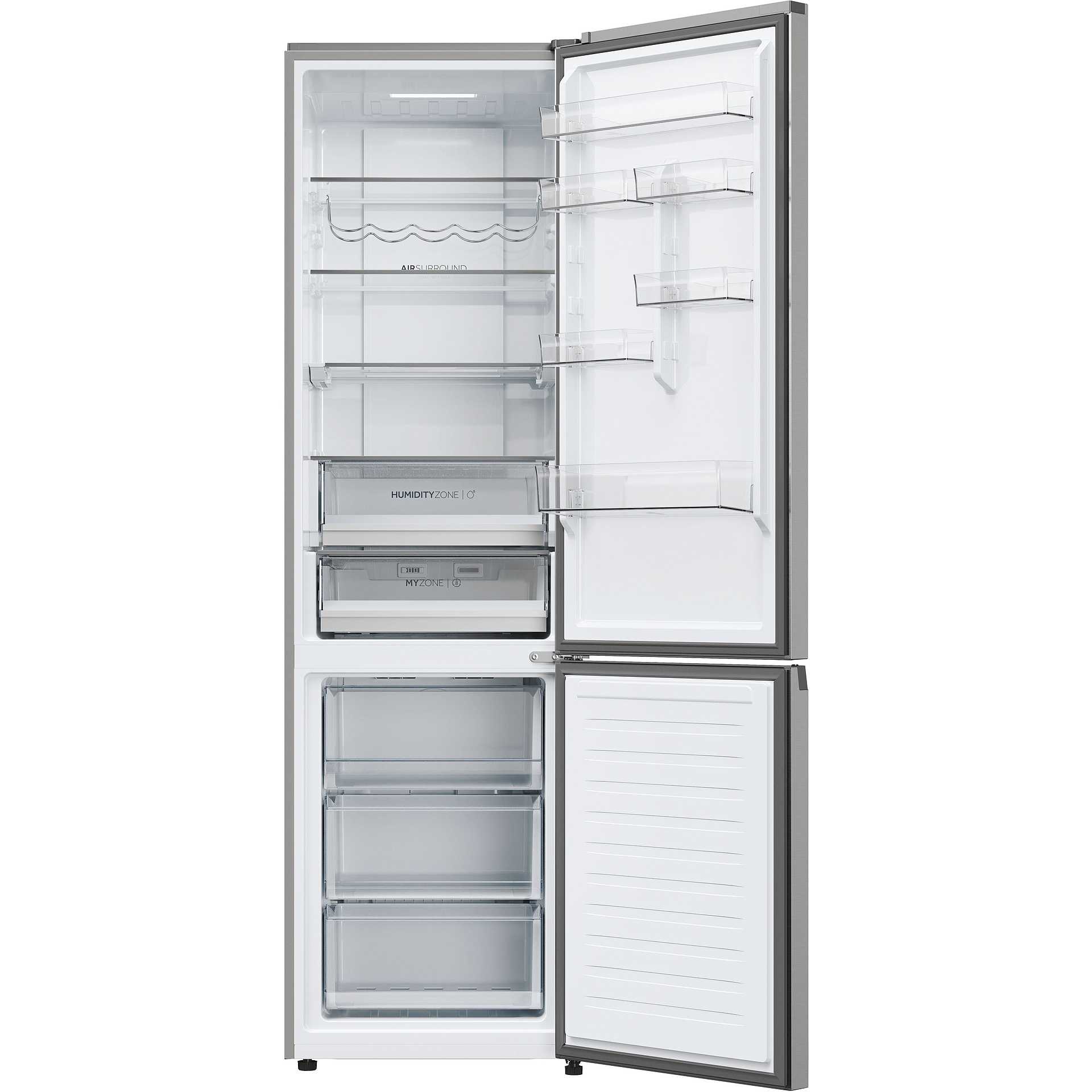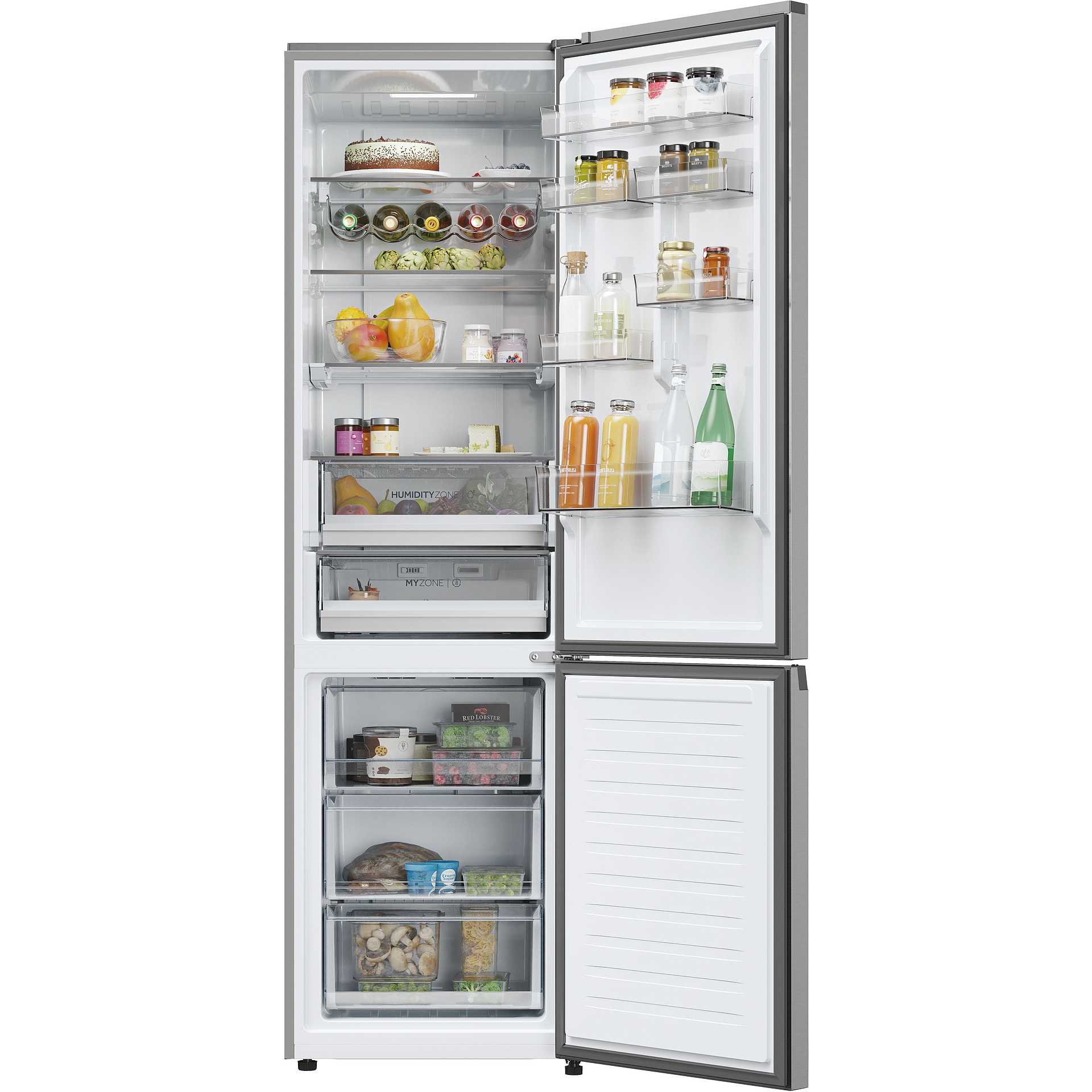 Tecnologie Haier (conservazione degli alimenti) | Air Surround, Anti-mould Gasket, Artificial Intelligence, Fast Freeze, Humidity Zone, Multi Air Flow, MyZone, Super Cool, Super Freeze, Total No Frost, Wine Rack, hOn App |