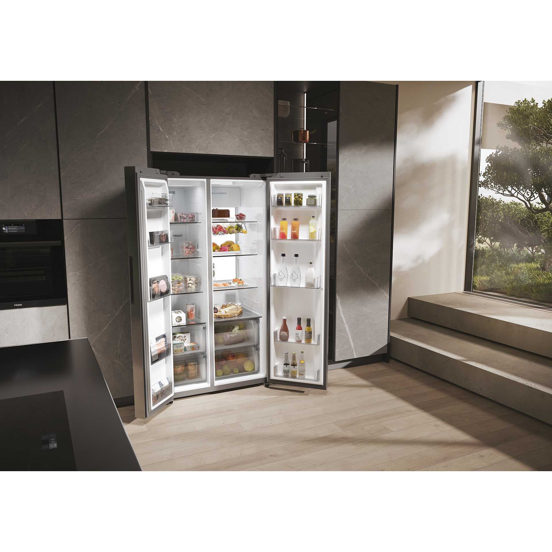 Haier Humidity Zone mantiene la frutta e la verdura fresche due volte più a lungo*. Questo avviene grazie alla tecnologia HCS (Humidity Control System), una membrana in fibra vegetale che può mantenere l'umidità al 90% e gestire automaticamente la giusta umidità. Questo evita la formazione di condensa all'interno del cassetto. Mantenendo l'umidità all'interno del vano al 90%, l’aria fredda circola ugualmente, così puoi conservare la spesa e il valore nutrizionale degli alimenti più a lungo. *come certificato da VDE N° ID.40046454 *Come certificato da VDE N° ID.40046454