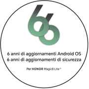 - Honor Magic8 Lite 5G unisce un ampio display AMOLED da 6,79" a una risoluzione 1200 x 2640 pixel, per contenuti ben definiti e una consultazione comoda durante l’uso quotidiano.
