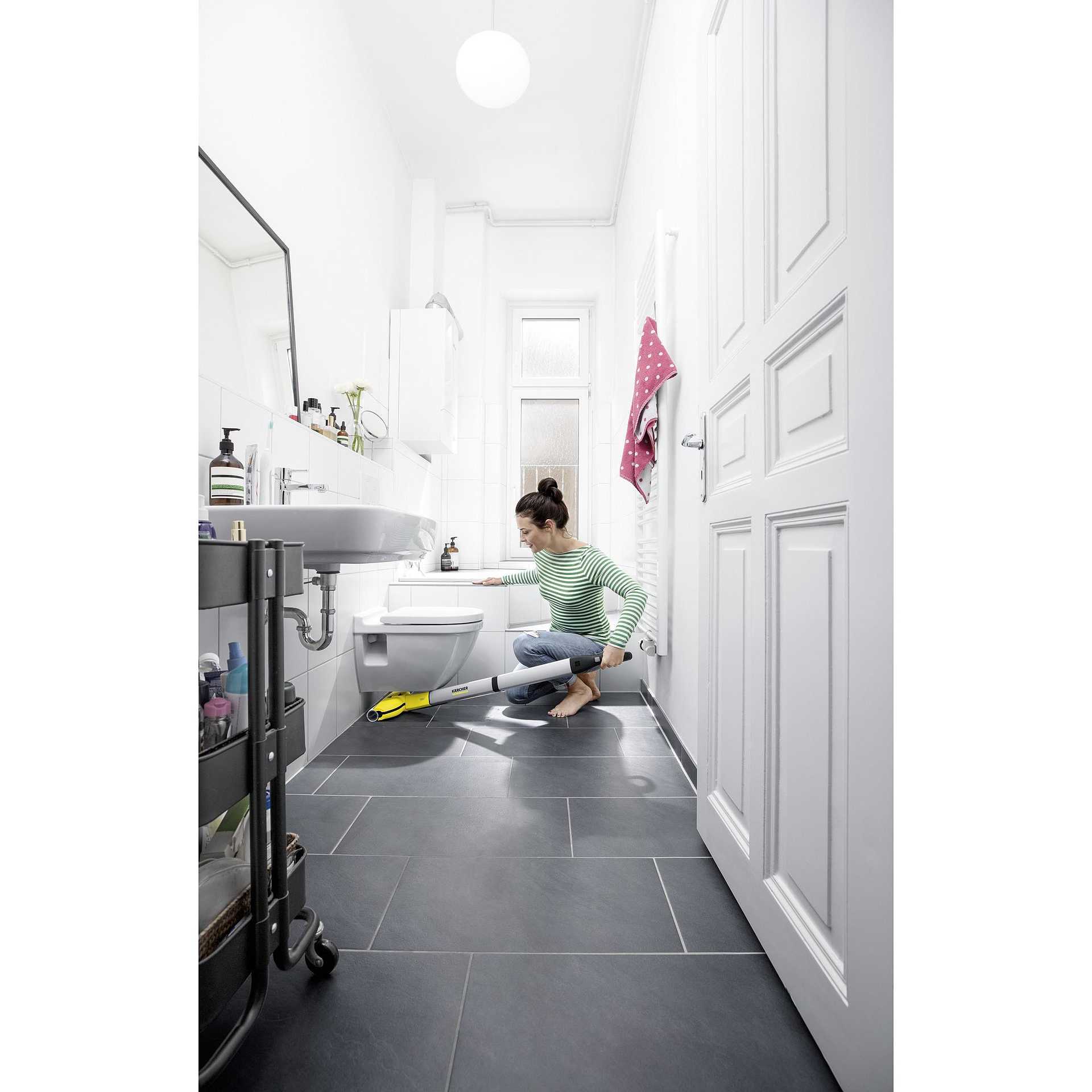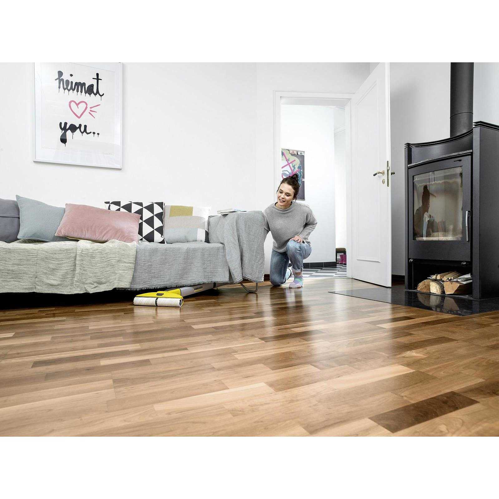 Karcher FC 3 senza fili pulisce i pavimenti utilizzando la fornitura costante di acqua pulita grazie all'innovativa funzione autopulente. Il suo design raggiunge facilmente le aree sotto i mobili.