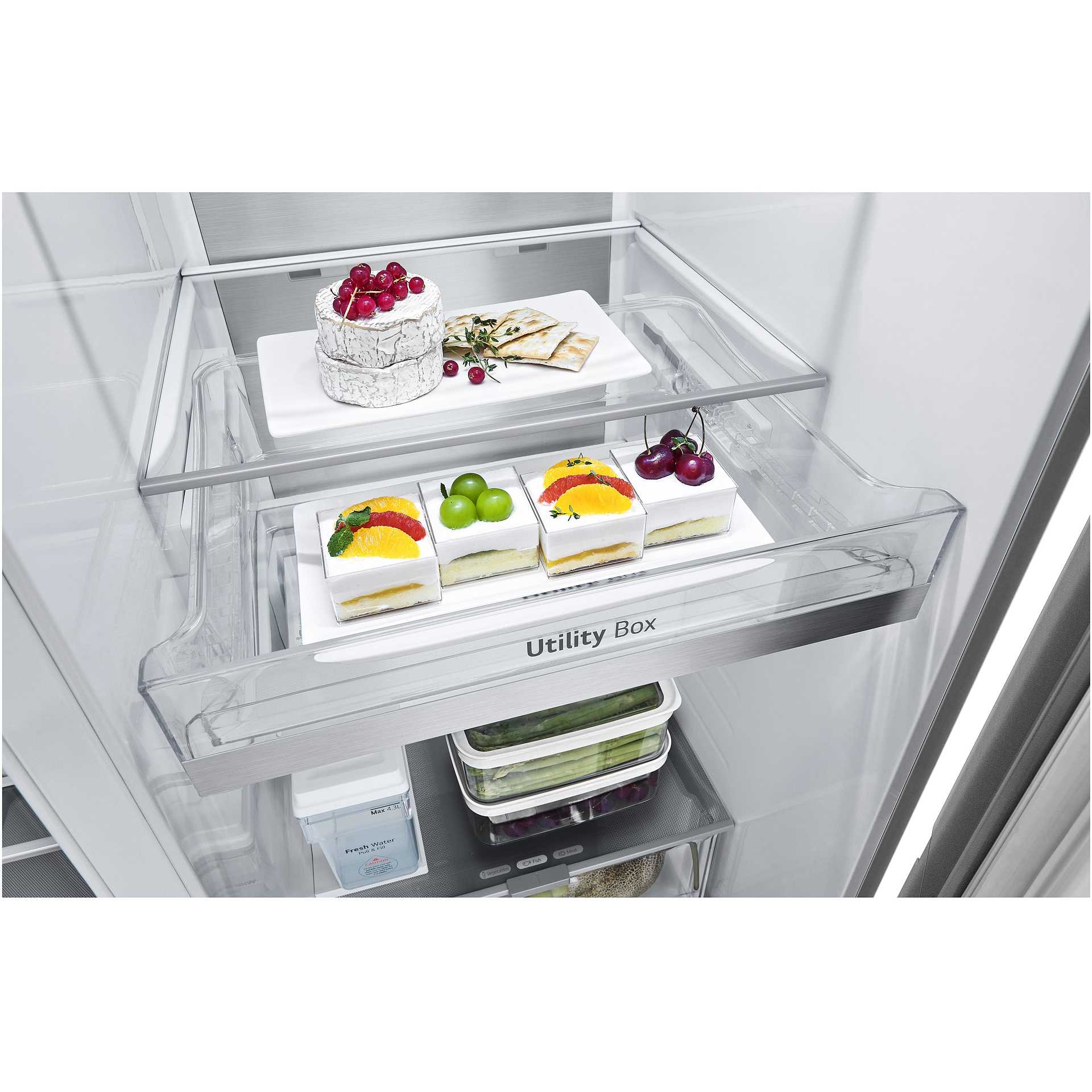 | Tecnologie LG (food storage) | DoorCooling+™, LINEARCooling™, Metal Fresh, Multi-Air Flow, NatureFRESH™ with DoorCooling+™, Slim SpacePlus® Ice System, Smart Diagnosis, Smart Inverter Compressor™, ThinQ, Total No Frost, UVNano™ |