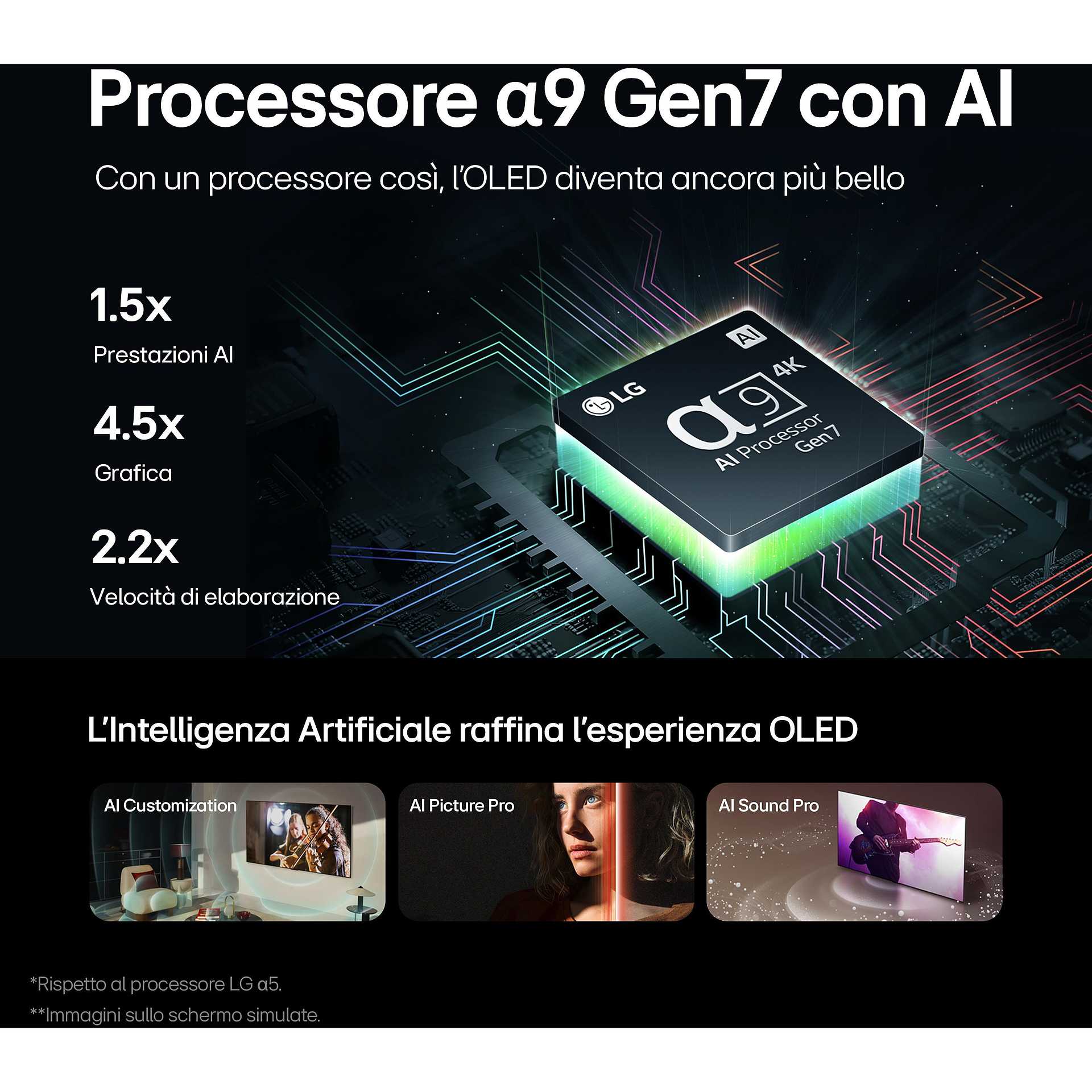 - Processore α9 Gen7: le immagini diventano più realistiche e i suoni più immersivi grazie all'Intelligenza Artificiale