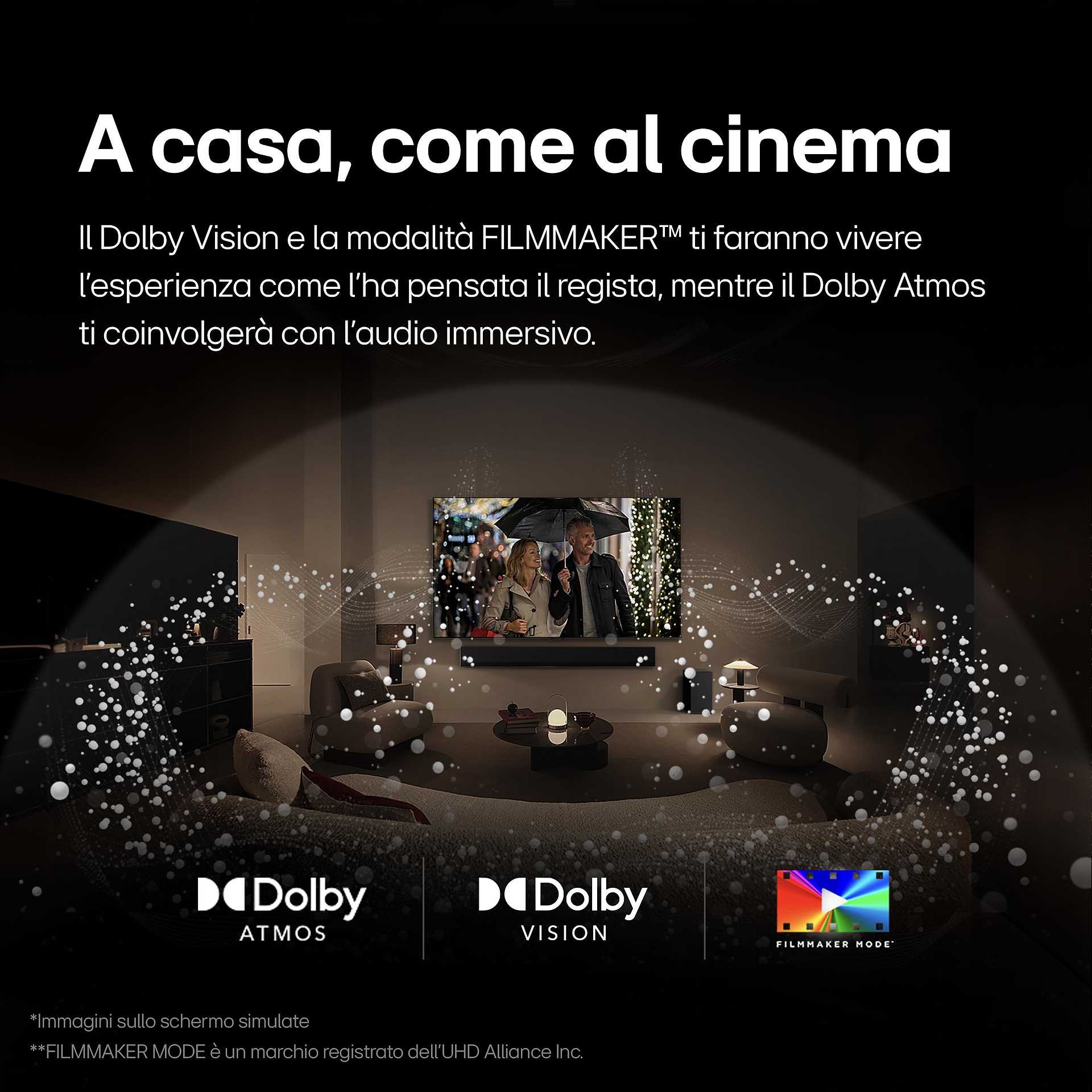 - Il cinema a casa tua: col Dolby Atmos e Dolby Vision i tuoi film e serie TV diventano ancora più coinvolgenti