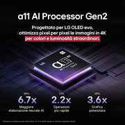 | Tecnologie LG (AV/TV) | AI Acoustic Tuning, AI Sound Pro, Dynamic Tone Mapping Pro, ThinQ™, WOW Orchestra, α11 AI Processor 4K |