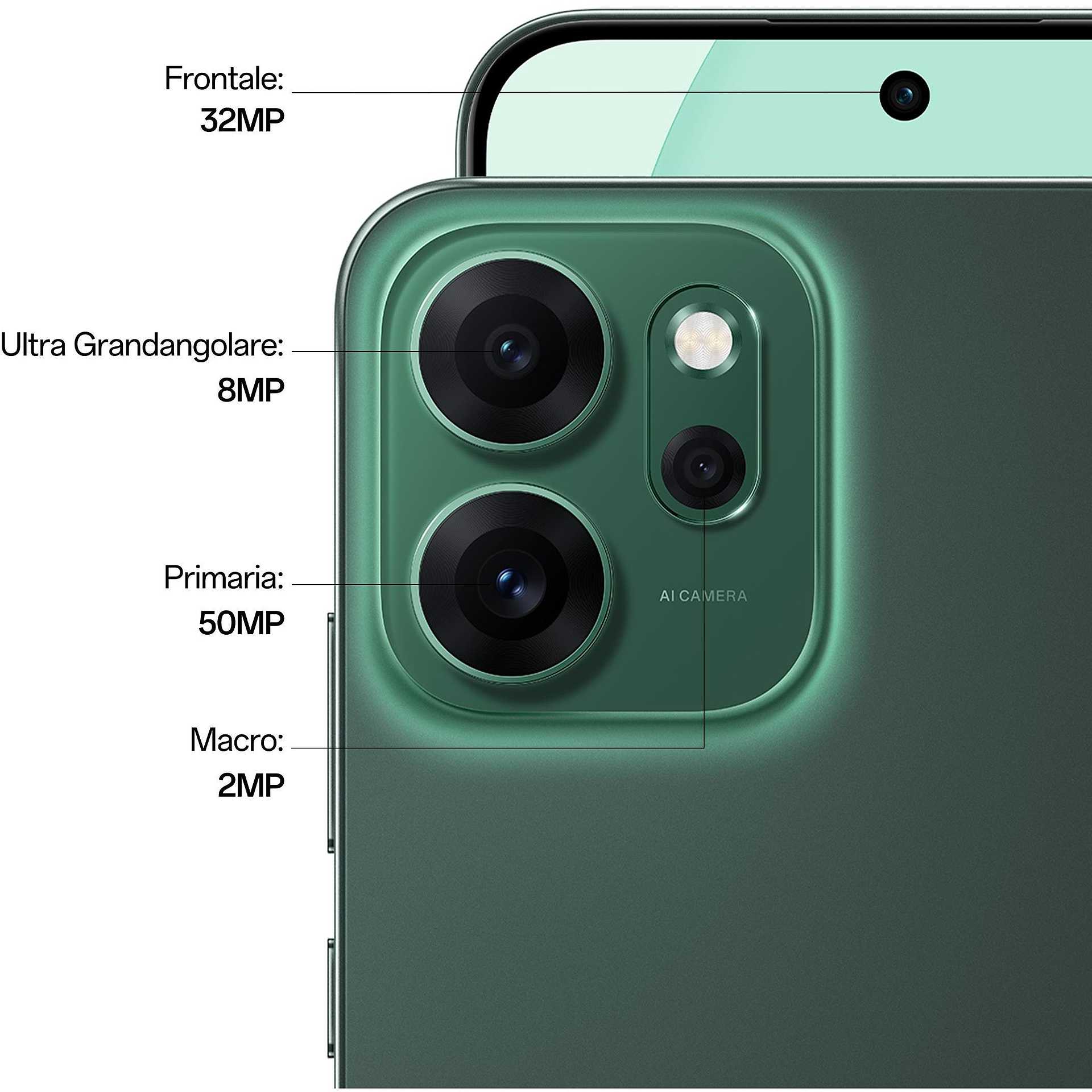 OPPO Reno 14 F Smartphone 5G 6.57" Ram 8 GB Memoria 256 GB Android 15 Colore Verde