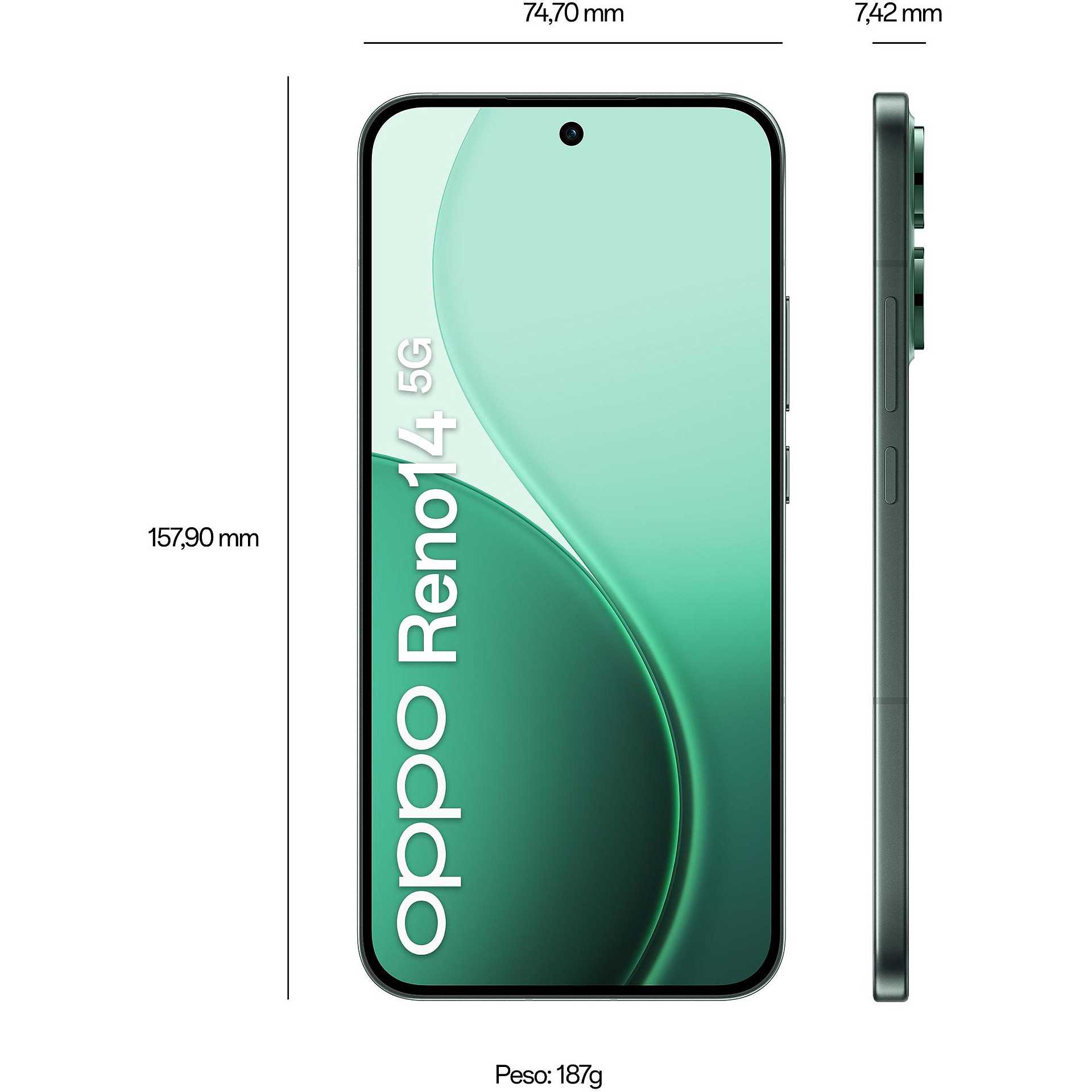 OPPO Reno 14 Smartphone 5G 6.59" Ram 12 GB Memoria 512 GB Colore Verde
