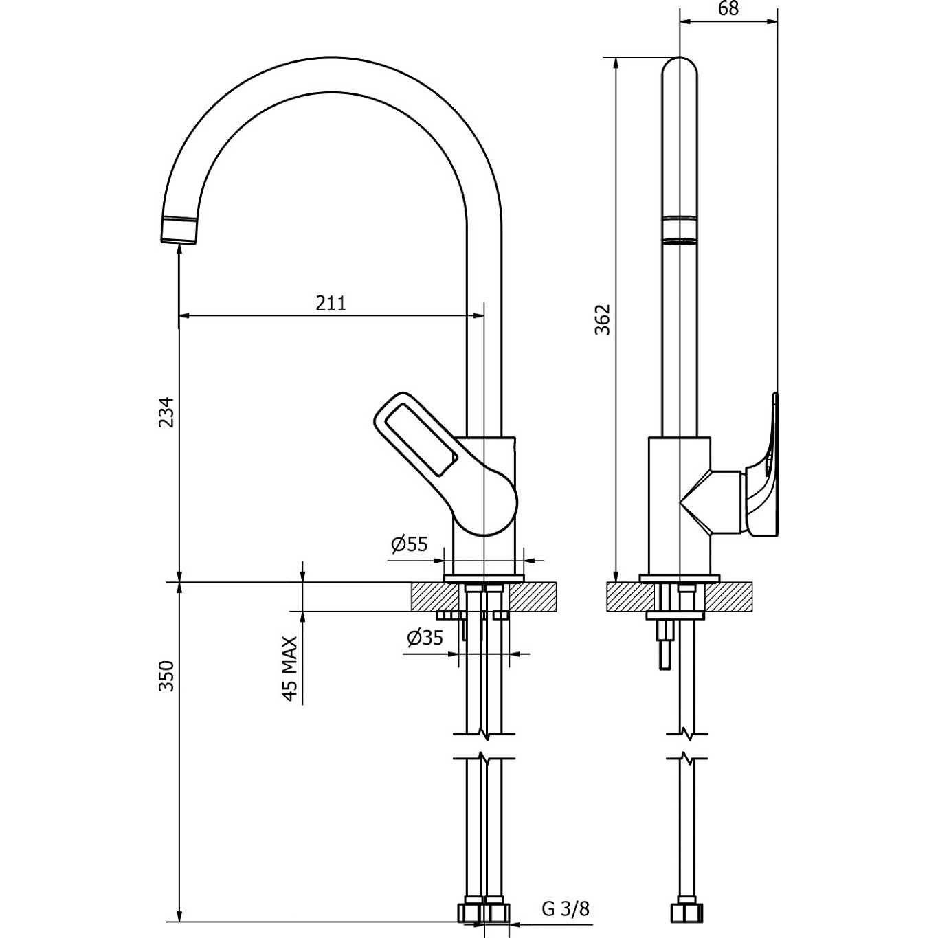 Teorema è un miscelatore per lavello dal design raffinato ed elegante con canna a u. Colore grafite.
