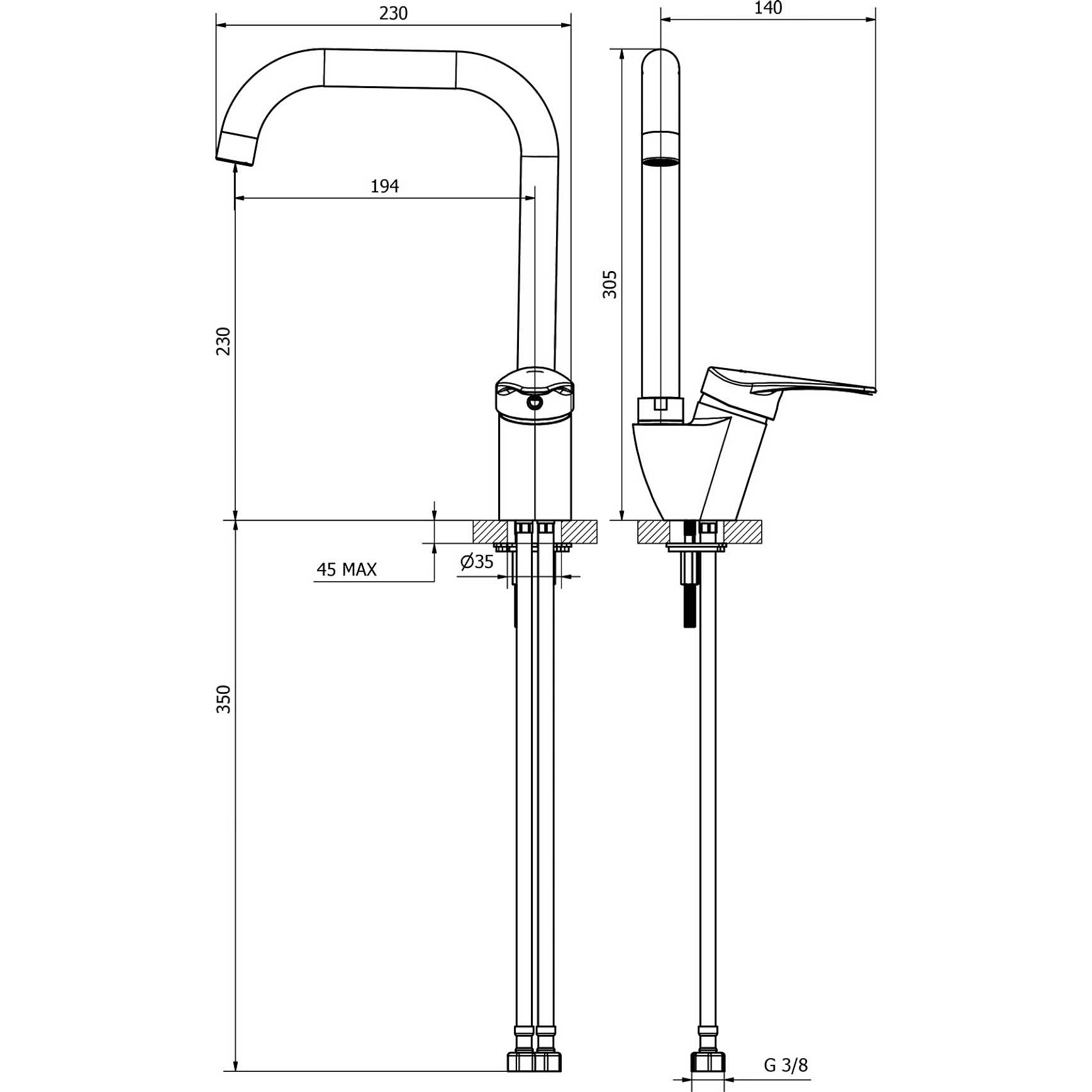 Teorema T-One è un miscelatore per lavabo dal design raffinato ed elegante con canna alta. Colore cromo.